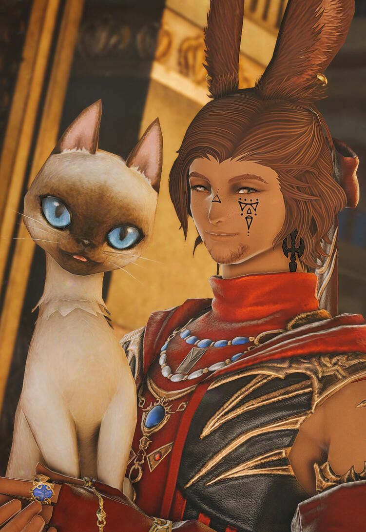I am a selective, story- and development-driven writer with several years of experience in collaborative RP. If you're interested in writing with me and potential story involvement, feel free to send me a tell in-game.While FFXIV contains fantastical themes/tropes that lean into contemporary parallels (e.g., xenophobia, racism and related stereotypes, class inequality, misogyny, and many others), I will not engage with players or groups whose OOC conduct, character design, or roleplay I find offensive, insensitive, or otherwise unpleasant.Rafi is a trans man with he/him pronouns. As an nb person with my personal experience at the heart of my writing, I like talking about the impact of gender in his narrative, backstory, design, and within Golmore and greater Viera culture. As suggested on the right side of this page, I don't tolerate crude or otherwise shitty transphobic comments, questions, microaggressions, and any similar vibes from other roleplayers and/or their characters, and will block/blacklist because of them.Rafi and his brothers are the result of a collaborative RP project between three friends, planned prior to Endwalker's release. Our headcanons and creative elements of their tribe, culture, and history are primarily sourced from XIV lore, with hinting influence from the lore of the Viera from Final Fantasy XII.