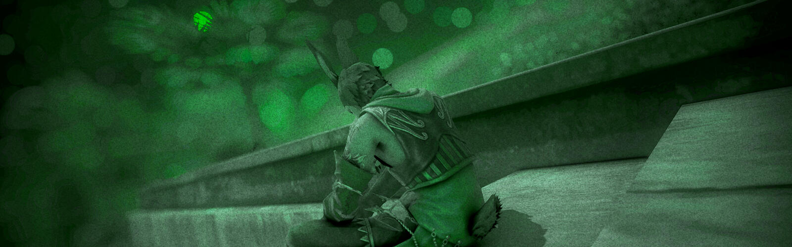 “It was an honor, then–a triumph, to survive all that?”Sure, but why sugarcoat it? That was the Green Word, a Golmore reality. Sheer luck was the reason he and his brothers survived as long as they did. As for honor, well, that was the purview of women. Their father died long before they learned his name.“And this Serpent–”Ask Maja. Jacks weren’t qualified to answer. It was the elders who revered the Wood guardians, elevated them to Rava godhood. And Maja, their faithful haruspex: her answer was as good as gold. She communed with meat-eating flowers to predict coeurl-queen weather, and she could tell if malboros were breeding just by examining the innards of a vinegaroon. It was possible she spoke directly to them, in the Old Tongue–which, according to Rava legend, could intercede to diresaurs and wyrms.“But what was the Serpent?”What is greatest? Ask that question, and its answer provides. The otherworldly Serpent: to Eryut, it was their sun-bright executioner; their priceless jury; a history of hungers, that all-consuming judge. Every Viera knew its shadow. Men were honored to die by its fangs.“To … die?”Yes. They died. The end.Where on Eorzea is there a story that keeps going after death?“No small wonder you left.”Silence, hard and oaken. Every time a conversation wound its way to this point Rafi would run a callused hand through his hair and blow out, whoo-hah, an anxious breath.“No small wonder—”Smiling, as pleasantly as he could muster, he would say, “could we talk about something else?”